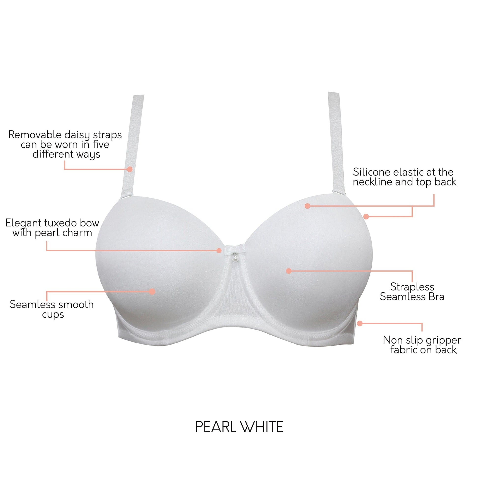 Sleek, seamless styling to make this the ultimate strapless perfect for any occasion. Detachable, convertible daisy embossed straps, make it versatile enough to style it five different ways.